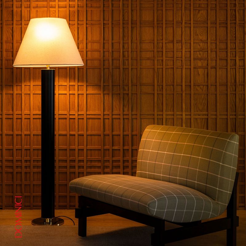 A luminária de piso 4399 da Dominici é uma peça refinada que alia praticidade e um design eterno. Sua estrutura cilíndrica em acabamento preto, combinada com a base metálica cromada, confere robustez e sofisticação ao ambiente. A cúpula, de formato clássico, emite uma luz suave e difusa, criando uma atmosfera confortável e acolhedora, perfeita para espaços de descanso ou leitura.