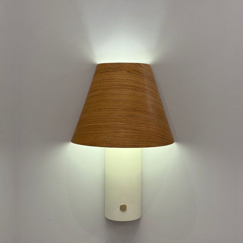 A Arandela Cambuí traduz o olhar sensível do design brasileiro para o essencial. O corpo em alumínio sustenta com leveza a cúpula em madeira freijó, criando um gesto visual simples e marcante. Sua luz reflete de maneira delicada, valorizando a textura natural da madeira e trazendo uma sensação de calma ao ambiente.