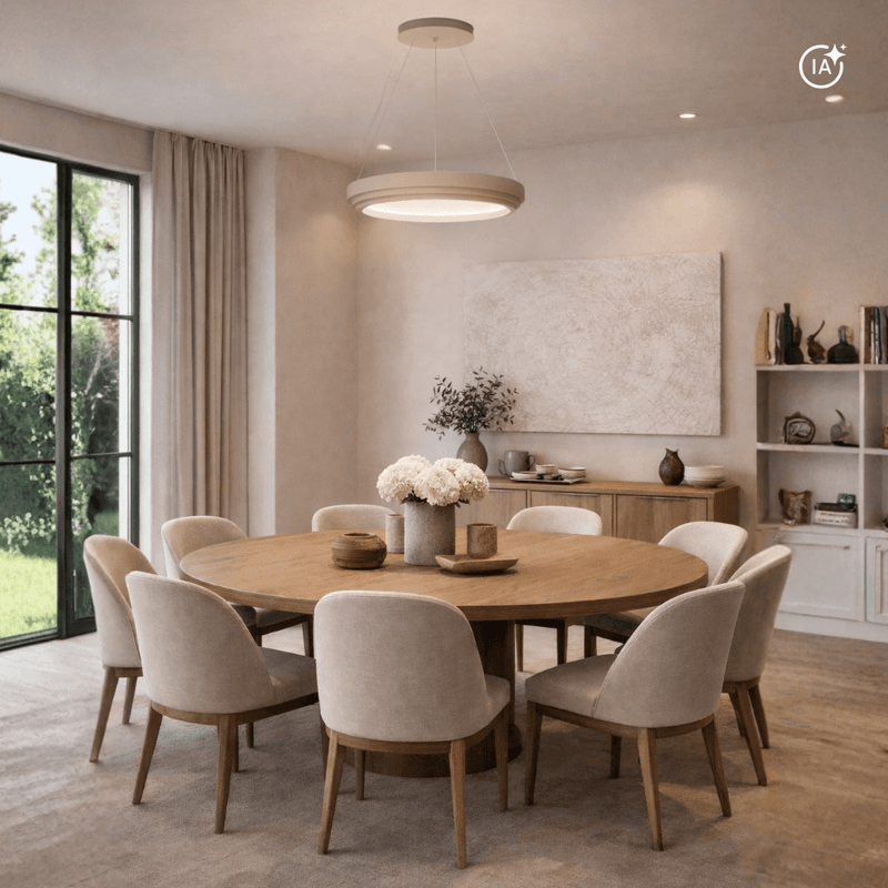 Suspenso por cabos discretos, o Anello se integra com naturalidade ao ambiente, funcionando como um elemento de luz sem interferir na composição.