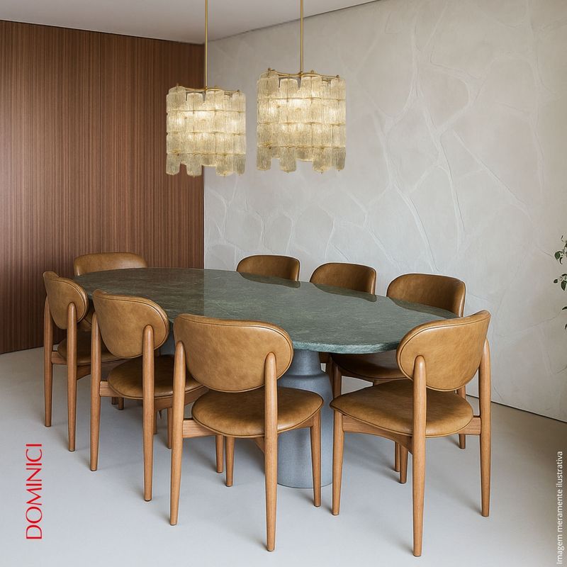 O Lustre Saboneteira se encaixa perfeitamente em ambientes que buscam um equilíbrio entre o clássico e o contemporâneo. Ideal para salas de jantar e espaços amplos que valorizam peças esculturais e iluminação difusa.