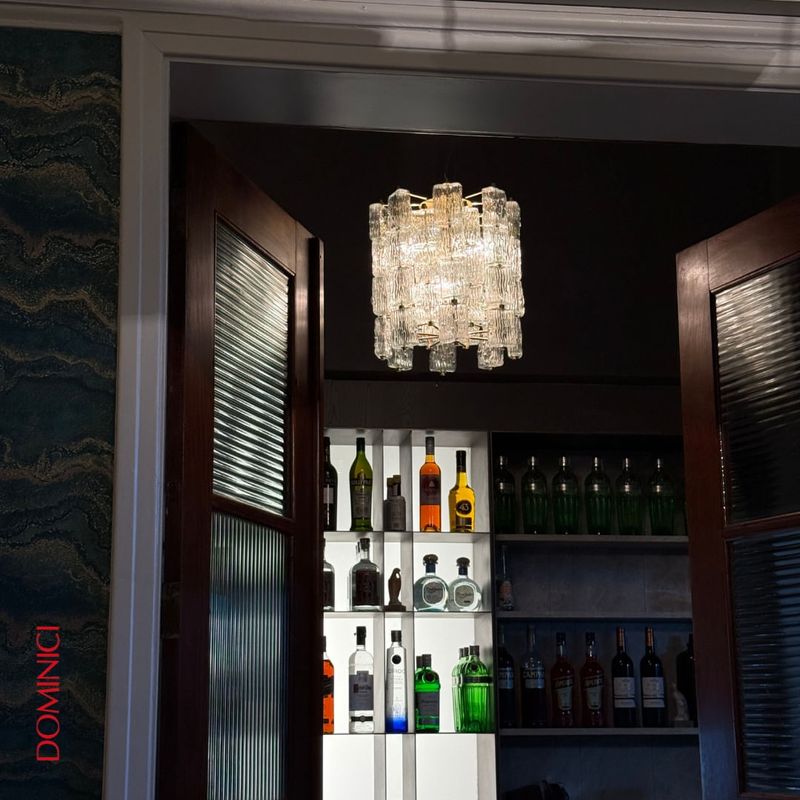 O Lustre Saboneteira combina tradição e sofisticação em um design marcante. Sua estrutura é composta por 56 delicados vidros feitos manualmente, um a um, conhecidos como "saboneteiras" que suavizam e difundem a luz de maneira homogênea, proporcionando uma iluminação envolvente e aconchegante.