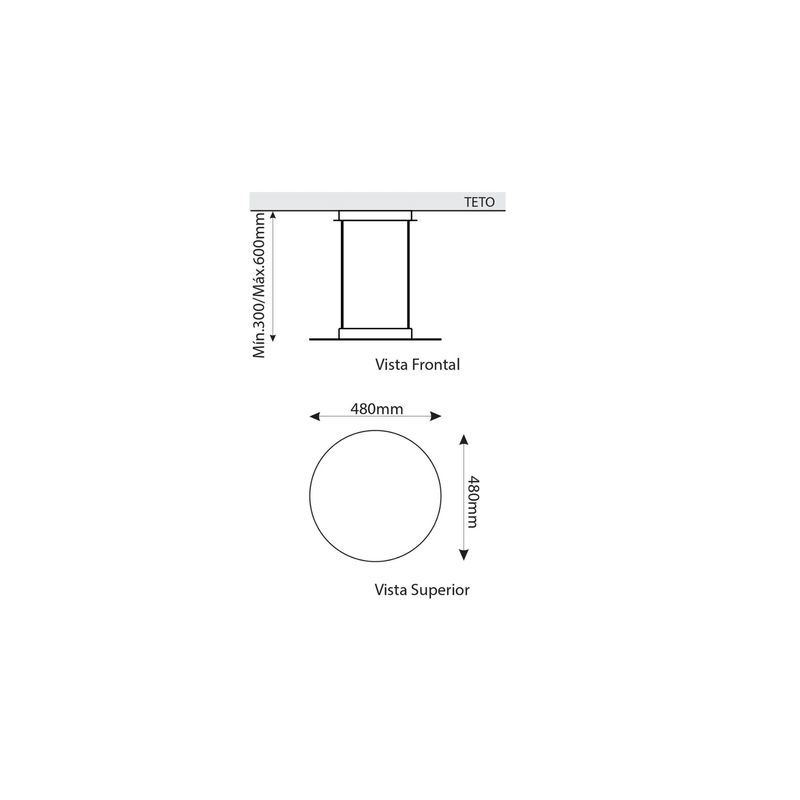 Suspenso por 4 cabos ajustáveis, com altura máxima de 60 cm, o plafon tem sua instalação facilitada pela fixação ao teto por canopla. Os componentes são feitos de alumínio pintado através de um processo eletrostático, garantindo durabilidade.